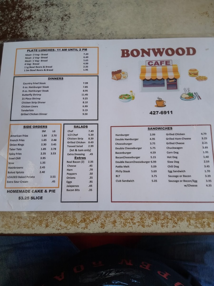 Welcome to Bonwood Cafe, a hidden gem located at 1874 S Highland Ave, Jackson, TN. This delightful cafe offers a welcoming atmosphere perfect for family gatherings and road-weary travelers alike. The menu is a hearty mix that caters to all ages, featuring a robust kids menu that includes classic favorites like Grilled Cheese and Chicken Tenders.